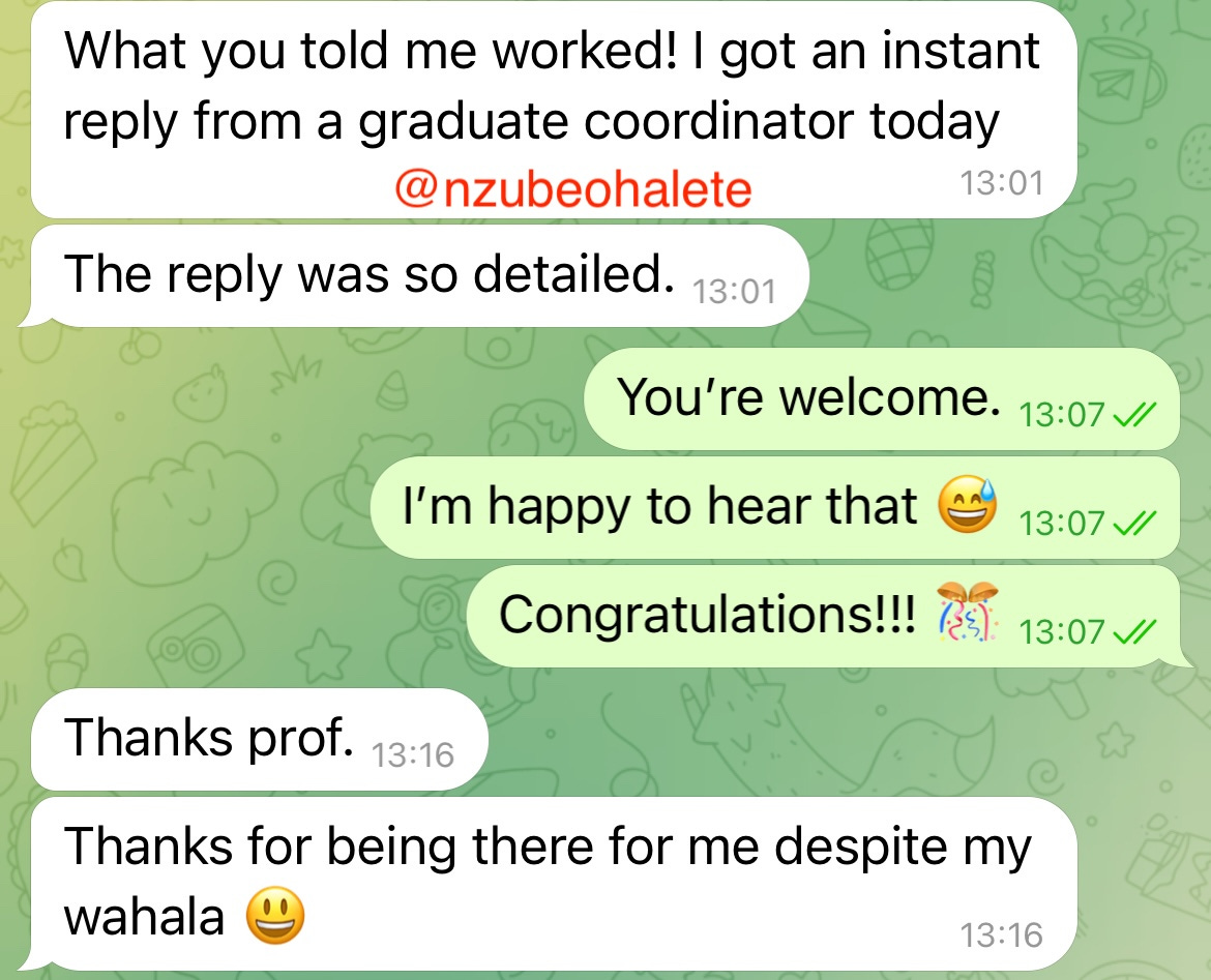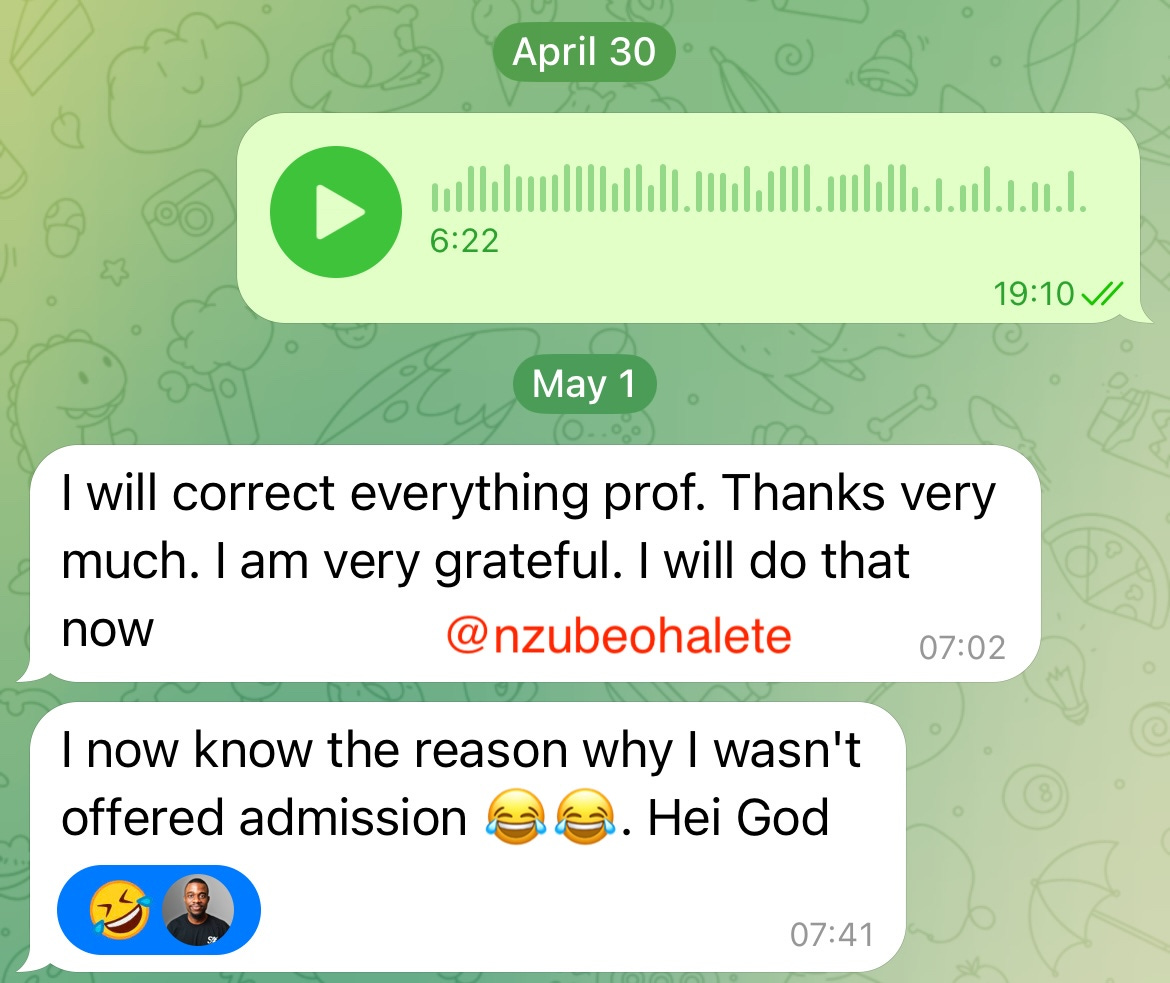 This was a real message from one of the bootcamp students after getting feedback on his documents.