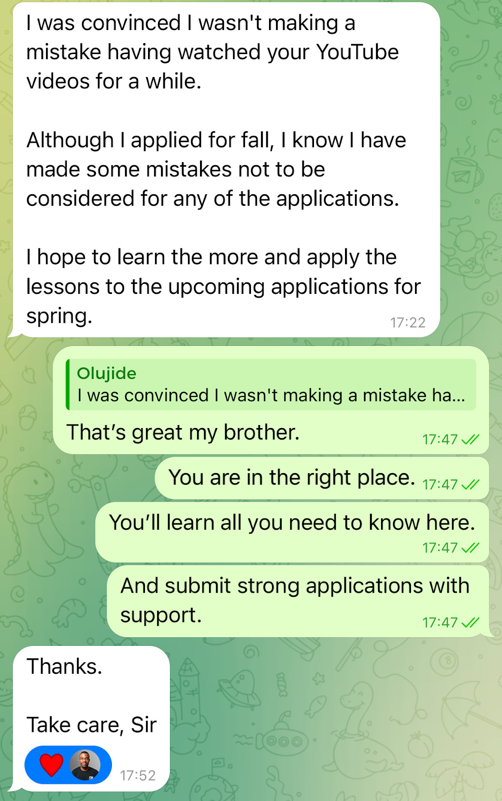 He joined the first cohort of my Scholarship Accelerator Bootcamp in April. He was like most people I work with - brilliant, hopeful, but honestly, a bit tired. He had applied before. No results. No application fees to waste. No connections abroad.